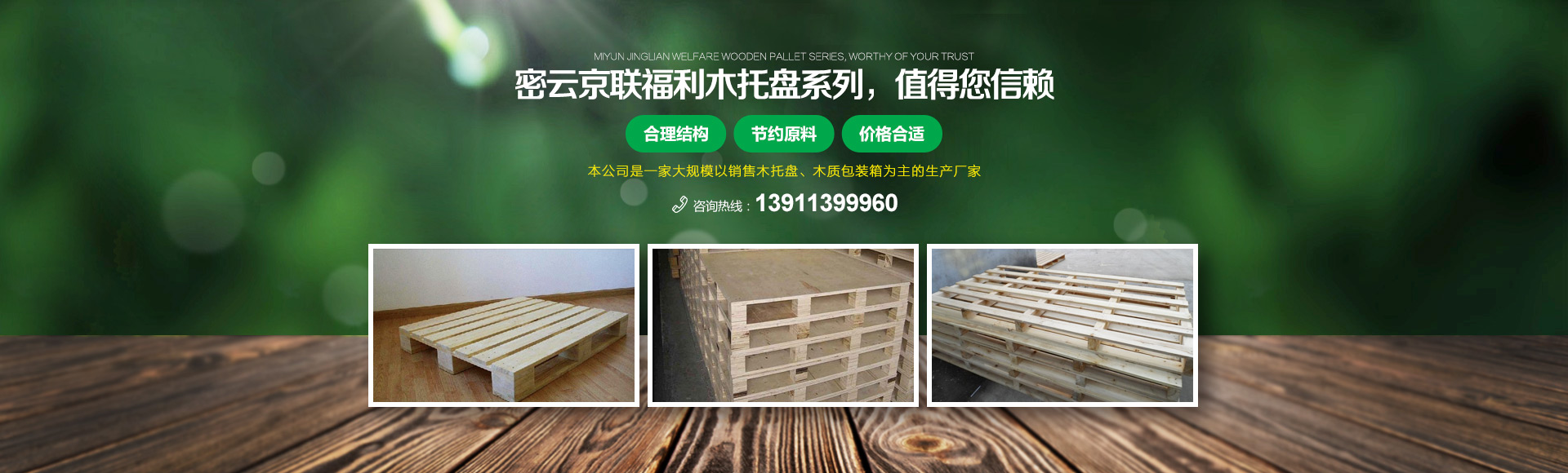 北京京聯(lián)國(guó)順木制品有限公司 (原北京市密云縣京聯(lián)福利木制品廠)成立于1993年,位于北京市密云縣西田各莊鎮(zhèn)蒼頭村,占地約5000平米。我公司工廠是一家大規(guī)模以銷(xiāo)售木托盤(pán)為主的生產(chǎn)廠家。本工廠是一家直接采購(gòu)原木,按客戶(hù)要求生產(chǎn)規(guī)格尺寸的托盤(pán),我公司工廠位于河北省承德市有著木材加工點(diǎn),可以做到,從山上的木頭下山到客戶(hù)手中的托盤(pán)都是一手貨,減少了中間商的費(fèi)用,所以我公司售出的產(chǎn)品對(duì)北京這個(gè)龐大的市場(chǎng)來(lái)說(shuō)在同樣的規(guī)格尺寸的托盤(pán)來(lái)說(shuō)價(jià)格比較占優(yōu)勢(shì)。